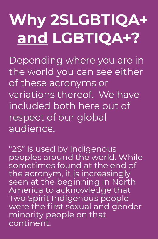 Many starting the journey into 2SLGBTIQA+/LGBTIQA+ inclusivity worry about getting terms wrong or unintentionally offending people. One message that has come through quite clearly in our discussions is that mistakes will happen, and no one will get it right 100% of the time.